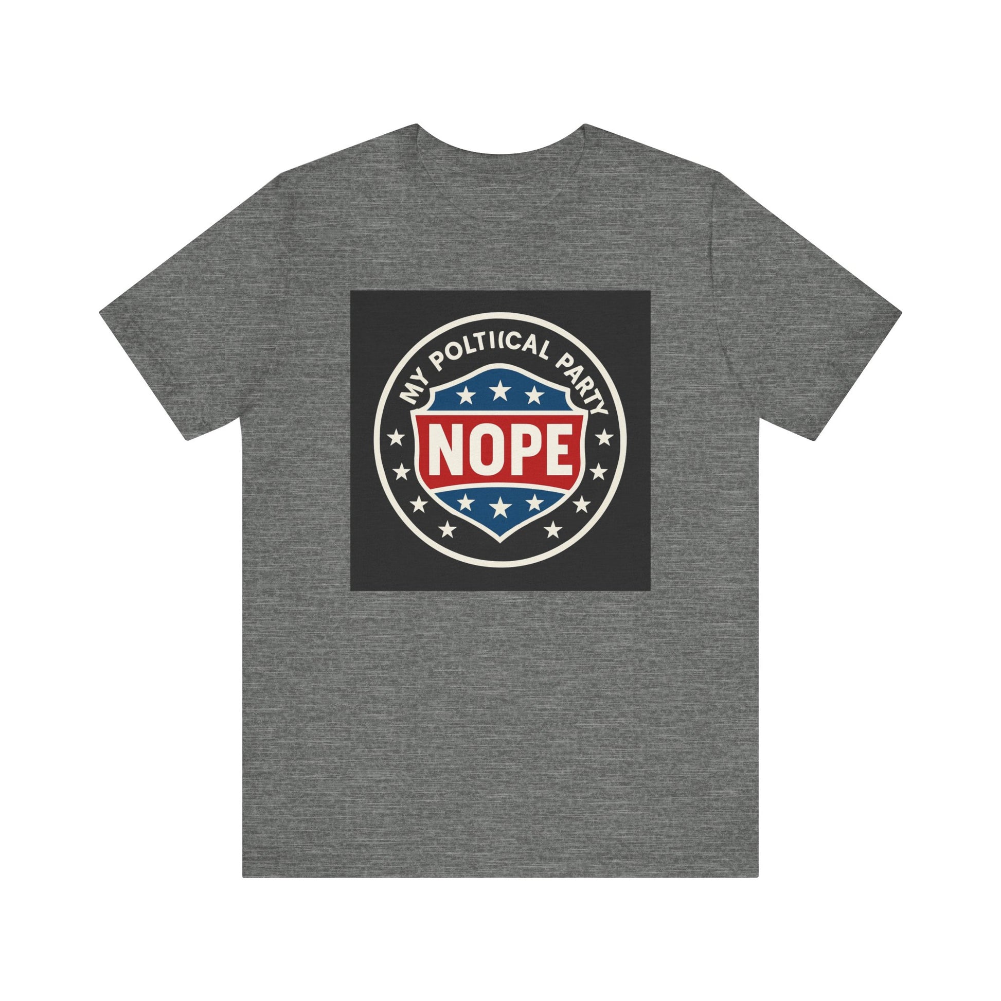 This “My Political Party Is: NOPE” tee looks like an official campaign logo, but proudly represents the only platform that matters: leaving the whole mess on read. Perfect for independents, moderates, and anyone who’s over the two-party circus.